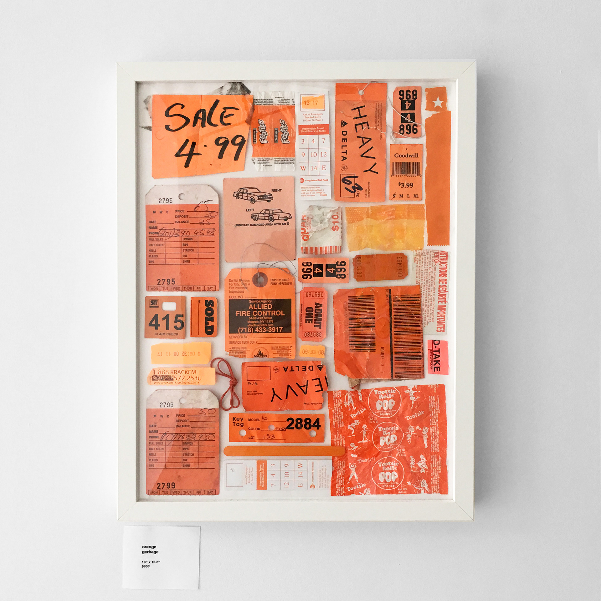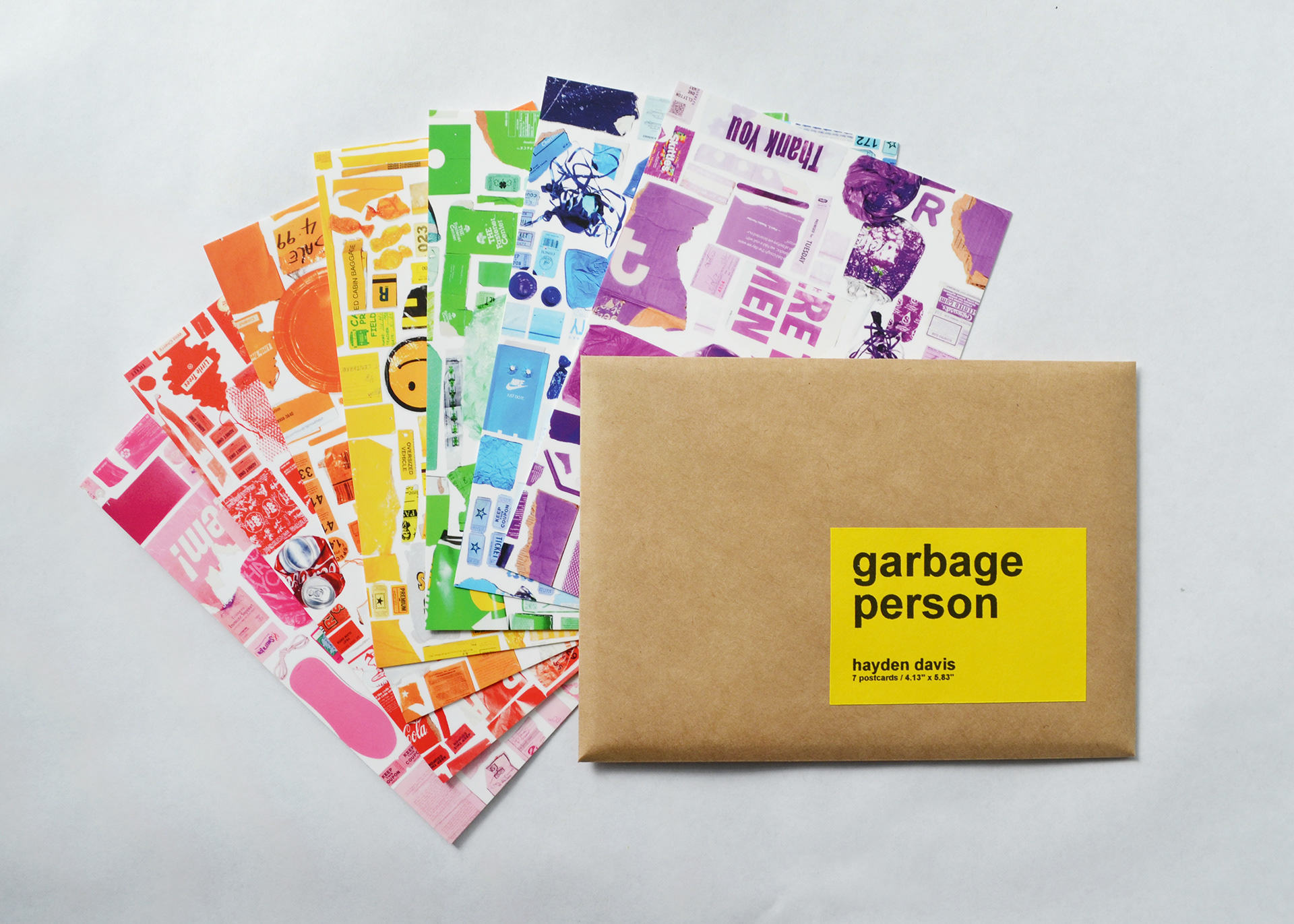 At the art show I sold a variety of extras: a 24 page color zine ($15) that documented the various garbage collections, a collection of 7 garbage collection color postcards ($30), and several poster prints. There are still several available for purchase. All easily shippable to anywhere.