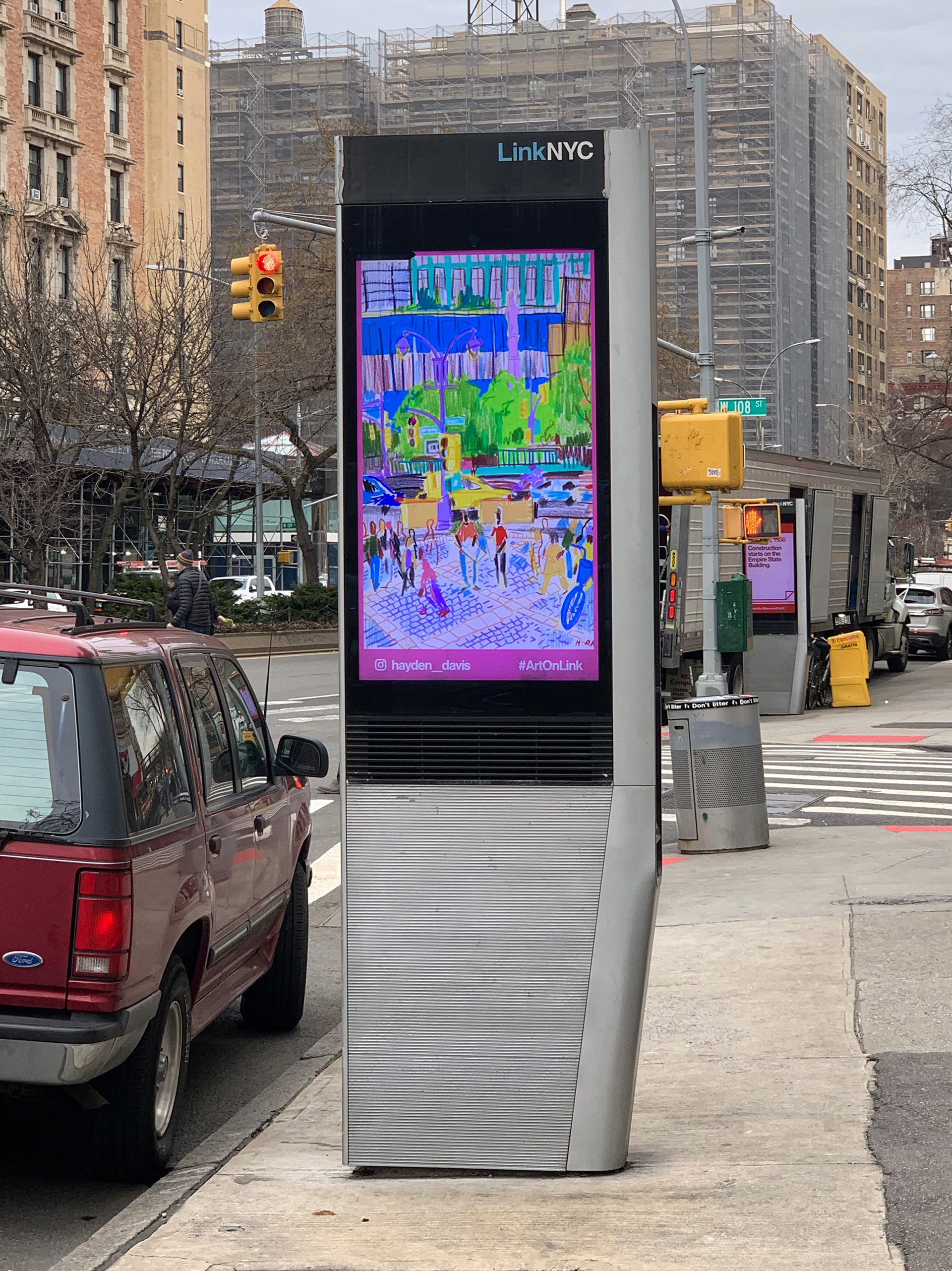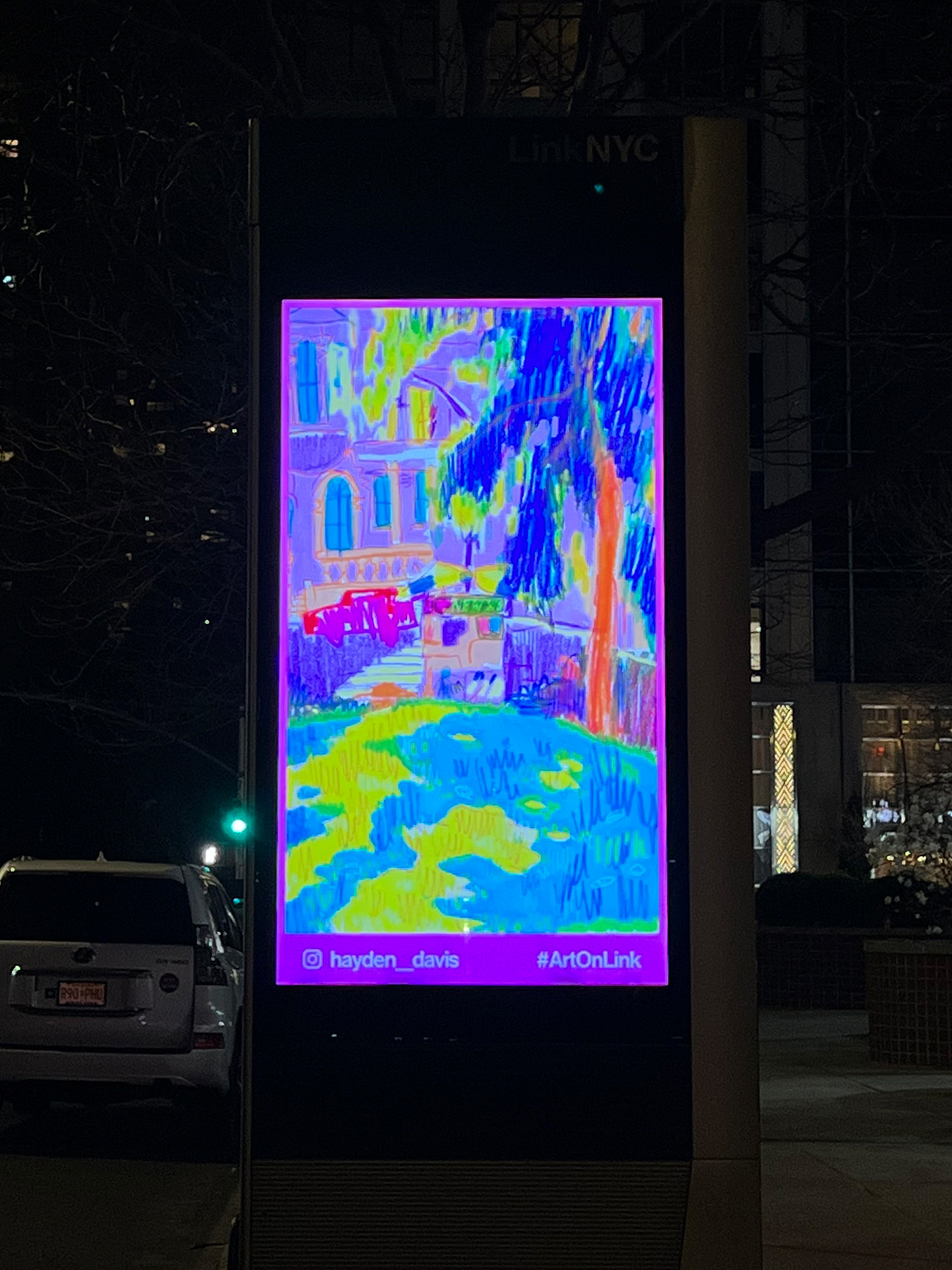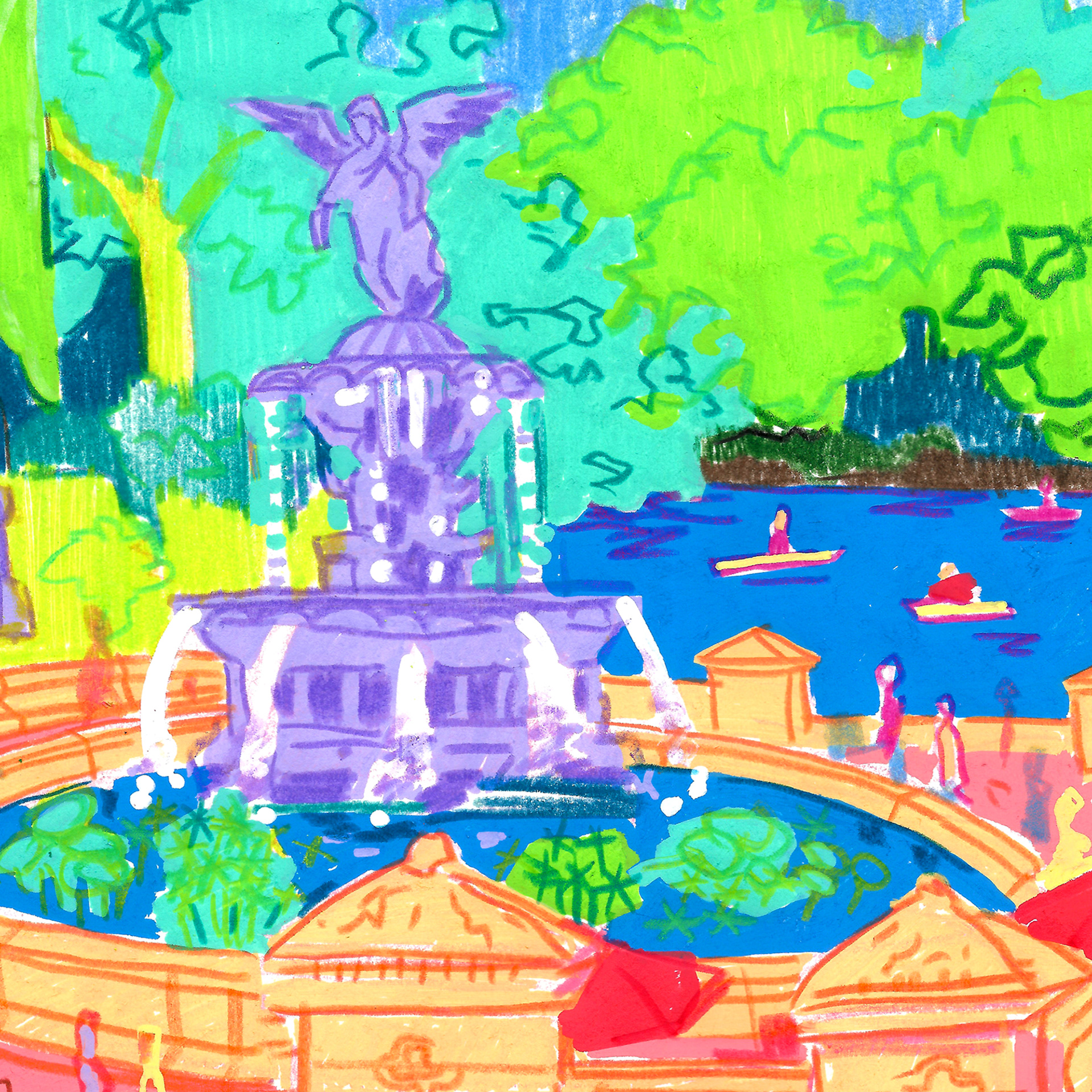 In the summer of 2022 I visited my favorite parts of the city and drew them with Posca paint markers and colored pencils. After creating a collection of 10, I framed and sold the original artworks and proceeded to make postcard print sets to sell. The collection did so well the next year, in 2023, I did a new set of 10 and another set of postcards. I submitted the artwork to LinkNYC, digital kiosks scattered around the city, and the drawings were featured there. I wanted to create artwork that was as colorful and full of life as the city I have grown to love.